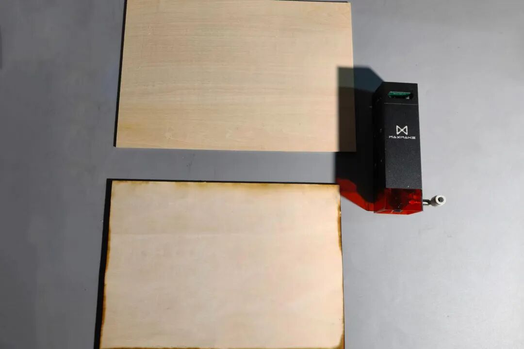 原理:激光切割時(shí),美紋紙會(huì)阻擋煙霧熏黑木板表面,切割完成后撕掉膠帶,木板表面依然潔白干凈,只有側(cè)面會(huì)留下漂亮的深褐色碳化邊,質(zhì)感拉滿