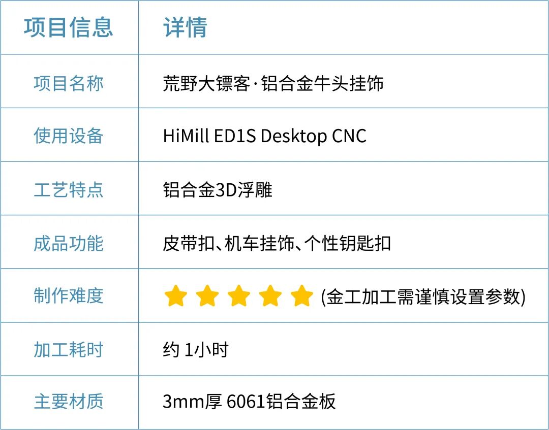 玩膩了木頭,今天來給HiMill ED1S上點強度 —— 切鋁!我用一塊6061鋁合金,復(fù)刻了經(jīng)典的 “長角牛頭” 造型。這不僅是要在硬金屬上雕刻切割出極具張力的牛頭輪廓,更是對桌面CNC性能的終極考驗。成品既是帥氣的皮帶掛飾,也是彰顯個性的工業(yè)風(fēng)藝術(shù)品,敢不敢來挑戰(zhàn)?