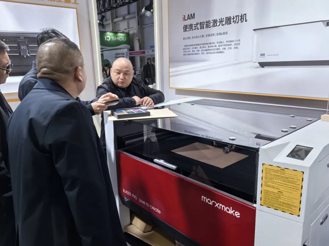 此次展會馬爾克斯展示的桌面級數(shù)控裝備主要有:便攜式智能激光雕切機(jī)iLAM、桌面式激光切割機(jī)iLASER、桌面式智能真空成型機(jī)iFORM、桌面式智能銑雕加工中心iCNC M8、便攜式智能銑雕一體機(jī)HiMill ED1S、大模型AI互動平臺HiEduX。