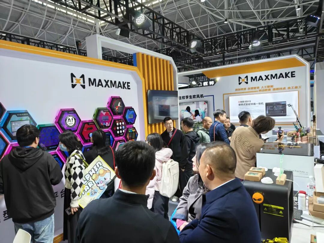 展會上,使用馬爾克斯產(chǎn)品制作的展品琳瑯滿目,它們不僅設(shè)計(jì)精致,外觀更是美觀大方,無一不吸引著眾多參展觀眾的目光,使他們紛紛駐足欣賞。其中融合人工智能技術(shù)的大模型AI互動平臺,讓觀眾直觀感受 “數(shù)字制造 + 編程實(shí)踐” 的獨(dú)特魅力,頻頻收獲贊嘆與好評。