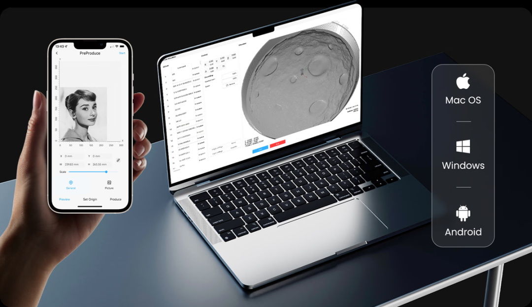 作為本次首發(fā)的核心產(chǎn)品,HiMill D1與D1S憑借多功能集成與高精度表現(xiàn),除了標(biāo)準(zhǔn)CNC銑削/雕刻功能,還集成了以下核心亮點(diǎn):